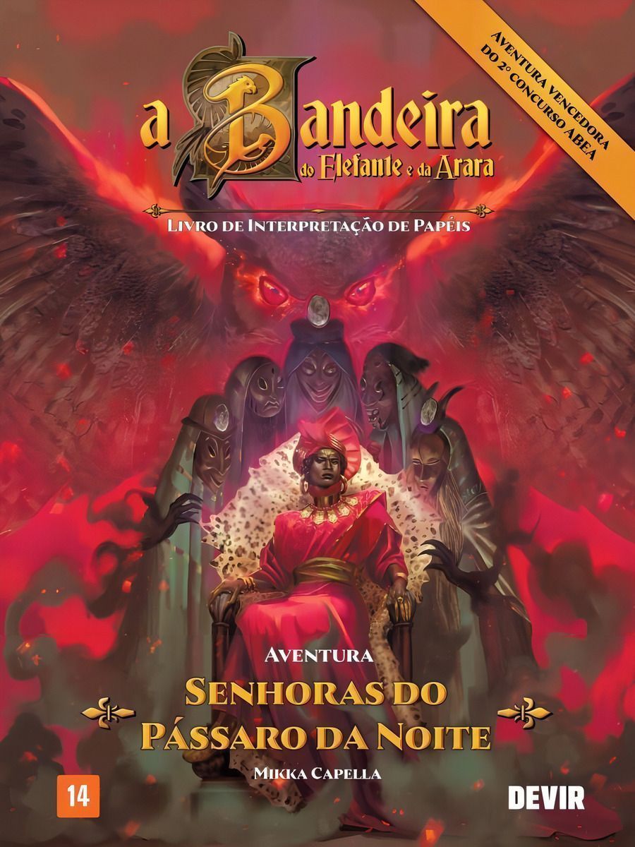 A aventura Senhoras do Pássaro da Noite pode ser jogada como uma aventura única ou como introdução para uma campanha ambientada na África Ocidental, notadamente na região conhecida como Iorubalândia; região de planalto habitada pelo povo Iorubá, delimitada ao Norte e a Leste pelo Rio Níger, compreendendo atualmente parte da Nigéria, Togo e Benin. Senhoras do Pássaro da Noite é uma aventura de investigação, conspiração e mistério na Corte do Alafim de Oió, Onigbogi, em 1530. Os fatos desta aventura acontecem cerca de cinco anos antes da invasão Nupe (1535), que dominará Oió por aproximadamente 80 anos, obrigando Onigbogi e sua Corte a refugiarem-se no Reino de Borgu. Nessa empolgante aventura, belamente ilustrada somos apresentados a novos personagens, lugares e situações que enriquecem ainda mais o já exuberante universo folclórico de A Bandeira do Elefante e da Arara. - As ilustrações de ABEA foram finalistas do prêmio Jabuti de “Melhor Ilustração” em 2018. - Suplemento de RPG que necessita do livro A Bandeira do Elefante e da Arara – Livro de Interpretação de Papéis.