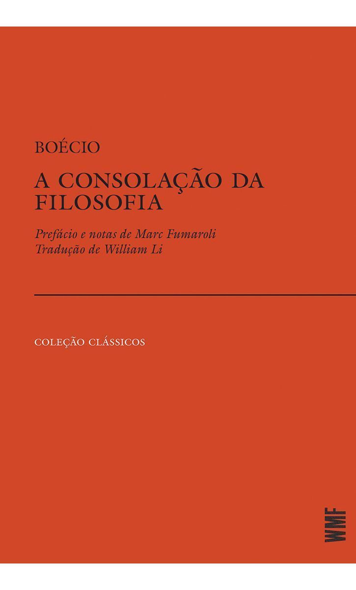 Escrita na prisão por um condenado à morte, essa obra latina do século VI não deve nada, ou deve muito pouco, às circunstâncias "trágicas" de sua composição. Trata-se de uma obra-prima da literatura e do pensamento europeu; ela se basta, e teria o mesmo valor se ignorássemos tudo a respeito daquele que a concebeu entre duas sessões de tortura, à espera de uma execução. Mas, dado que essa obra-prima não é anônima, nada perde por ter um autor e ser situada em suas circunstâncias, torna-se também, assim, o testemunho da grandeza à qual um homem pode elevar-se pelo pensamento em face da tirania e da morte.