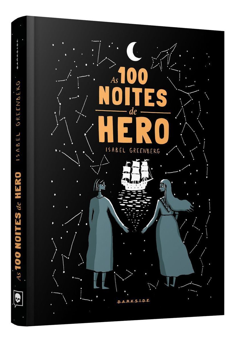 Um mundo foi criado pela Menina. Mas seu pai, o Homem-Ave o tomou para si e mudou como as criaturas desse mundo se relacionavam entre si e com eles, os deuses. Nessa realidade, as mulheres eram proibidas de serem alfabetizadas e mantidas longe do conhecimento. Porque conhecimento é poder. Esse é o começo de As 100 Noites de Hero, de Isabel Greenberg, um livro forte, cruel, fantasioso e, ao mesmo tempo, realista. Em clara alusão a Scheherazade, a contadora de histórias do clássico 1001 Noites, a autora cria uma trama poderosa que transita pelas fábulas e mitos para mergulhar na mais pura realidade de nosso próprio mundo. A fábula criada por Greenberg reimagina o conto de fadas árabe e narra a história de Cherry e sua aia, Hero, nome inspirado no mito grego antigo que relata a história da jovem sacerdotisa de Afrodite, Hero, e Leandro. O amor secreto das duas é ameaçado quando o marido de Cherry viaja e um amigo dele aposta que consegue seduzi-la antes de ele retornar para casa. Elas sabem da força que o conhecimento traz e entendem como as histórias podem mudar aquele mundo — e também podem mudar o nosso. Por cem noites, Hero conta histórias para distraí-lo, envolvendo pântanos escuros, estufas flutuantes, filhas amaldiçoadas e uma harpa que canta assassinatos. O perigo espreita cada uma dessas histórias e o poder narrativo de Hero constrói tramas repletas de suspense que prendem o pretendente em uma teia da qual ele não consegue escapar. Com arte peculiar e hipnotizante, e camadas de cores e de elementos tão ricas quanto a sua trama, Greenberg rememora diversas fábulas, ao mesmo tempo em que se distancia delas ao tratar da angústia que o patriarcado produz. As 100 Noites de Hero causa uma impressão profunda nos leitores ao apresentar uma história sobre loucura, traição e lealdade, poder e liberdade, além de questionar os finais felizes e as imposições das relações abusivas que permeiam o mundo — infelizmente, ainda atual, como tem sido desde tempos imemoriais.