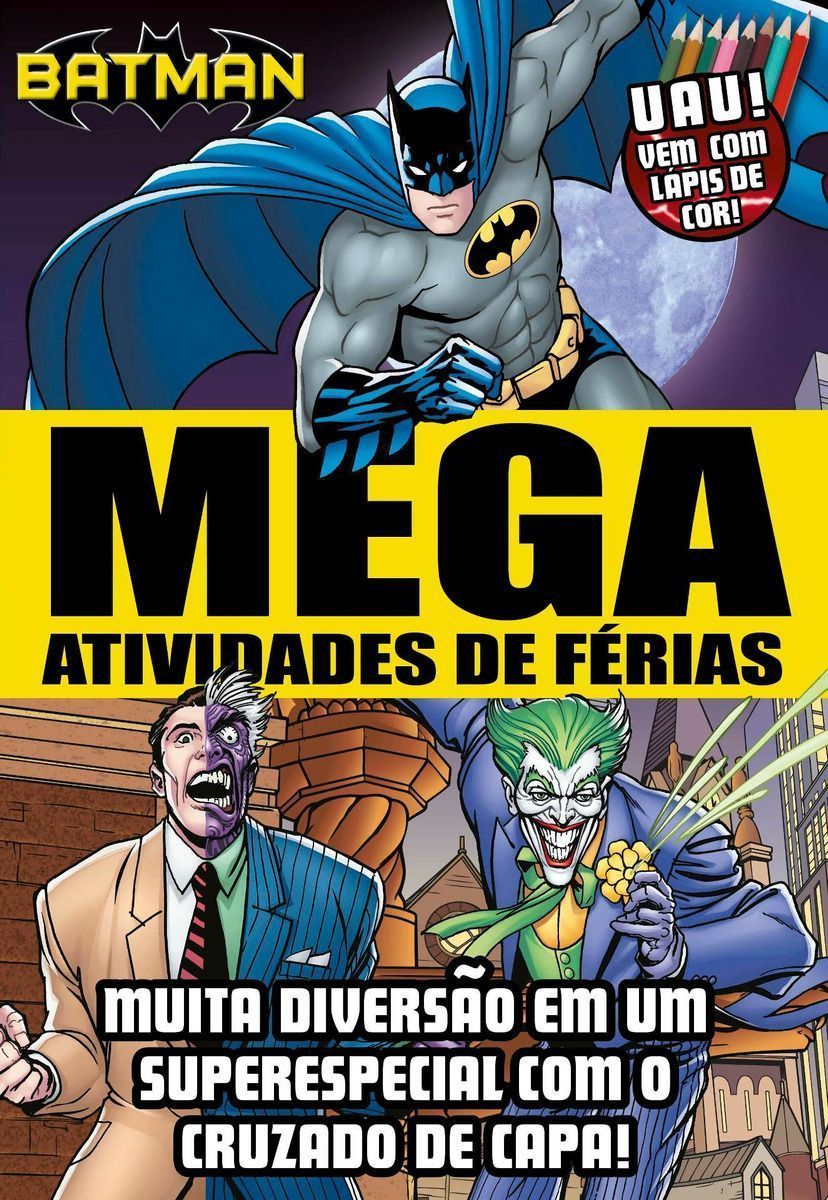 Suas férias serão ainda mais divertidas com a companhia do Batman. São diversas atividades para você pintar e brincar. E já acompanha lápis de cor para a diversão ficar completa.