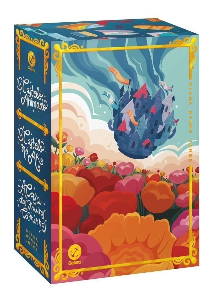 Conheça o universo mágico criado por Diana Wynne Jones, que inspirou a animação O castelo animado do Studio Ghibli. Agora com um novo e lindíssimo projeto gráfico, os três livros da série estão reunidos pela primeira vez em um box rígido acompanhado de marcadores e cards. Nomeado pela revista Times como uma das fantasias mais icônicas de todos os tempos, O castelo animado é um clássico infantojuvenil. Ex-aluna de personalidades como C.S. Lewis e J.R.R. Tolkien, Diana Wynne Jones imprimiu em seus livros a dose necessária de magia e fantasia para que qualquer um, independente da idade, se apaixonasse e se deixasse levar por seus bem construídos e clássicos universos. De um modo ou outro interligadas, as histórias do Box O castelo animado são, definitivamente, o que você precisa para escapar do mundo real e viajar para bem longe: em um tapete diferente, para uma cidade distante, refúgio de poções mágicas, personagens fantásticos e um segredo a cada esquina. Com um projeto gráfico especialmene por Isadora Zeferino (imzeferino), ilustradora carioca dona de trabalhos supercoloridos e com clientes como Faber Castell, Globosat e Melissa, o box é o presente ideal – para alguém que você ama ou, melhor ainda, você mesmo. O castelo animado (368 pág.) Em O castelo animado, primeiro volume série, conheça a história de Sophie Hatter: após, certo dia, ser amaldiçoada pela Bruxa das Terras Desoladas, a jovem se torna uma senhora de 90 anos. Receosa e insegura por conta de sua nova aparência, ela decide fugir de sua família e vai em busca de ajuda e um lugar para ficar. É então que se depara com o castelo do terrível Mago Howl, conhecido por devorar o coração das moças do povoado. No entanto, quanto mais os dias passam, mais Sophie entende que, na verdade, a realidade vai além do que se vê – e percebe que é possível, sim, encontrar humanidade e compaixão dentro de cada um. O castelo no ar (352 pág.) Em O castelo no ar, descubra a história de Abdullah, um jovem mercador de tapetes que se vê, de repente, no meio de uma enorme confusão após um estranho misterioso deixar em sua tenda um tapete dito mágico em troca de uma bagatela. Na manhã seguinte, sua vida e tudo o que ele conhece estão de cabeça para baixo... e ele precisará ter corajoso para enfrentar todos os obstáculos que surgirão nesta excêntrica jornada. A casa dos muitos caminhos (336 pág.) Em A casa dos muitos caminhos, mergulhe na história de Charmain Baker, uma jovem superprotegida pelos pais, apaixonada por livros e que recebe uma repentina tarefa: cuidar da casa de seu tio-avô William Norland, um mago idoso que, por conta de uma doença, precisa sair da cidade em busca de tratamento. Charmain acredita que a obrigação acabará, no fim, valendo a pena: afinal, esta é sua oportunidade perfeita de sair de casa e um dia trabalhar na Biblioteca Real, seu maior sonho. No entanto, ela não fazia ideia que a casa era repleta de magia! Com uma infinidade de portas, quartos e segredos, a estadia na casa de seu tio-avô se torna uma aventura e um mistério cada vez maiores a cada dia que passa.