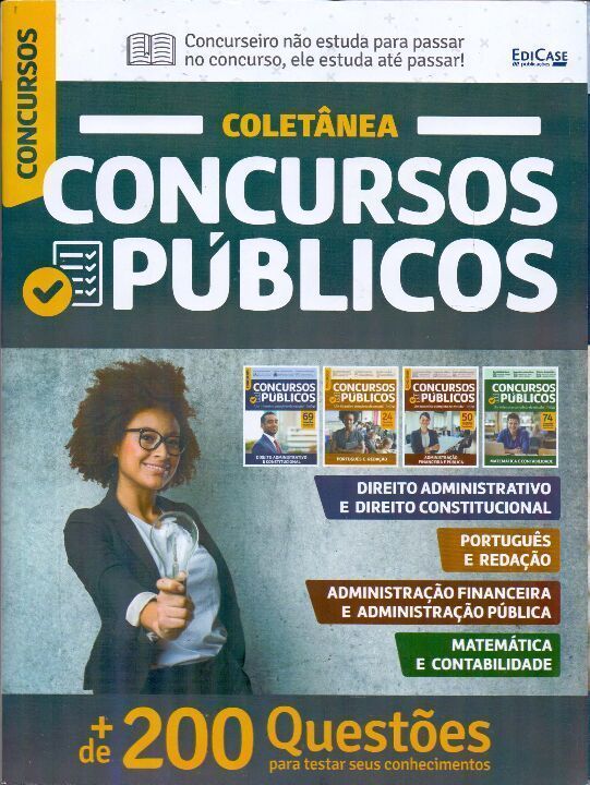 Coletânea Concursos Públicos - 4 Volumes. + De 200 Questões para testar seus conhecimentos. 1.Direito Administrativo e Direito Constitucional. 2. Português e Redação. 3. Administração Financeira e Administração Pública. 4. Matemática e Contabilidade. Concurseiro não estuda para passar no concurso, ele estuda até passar!