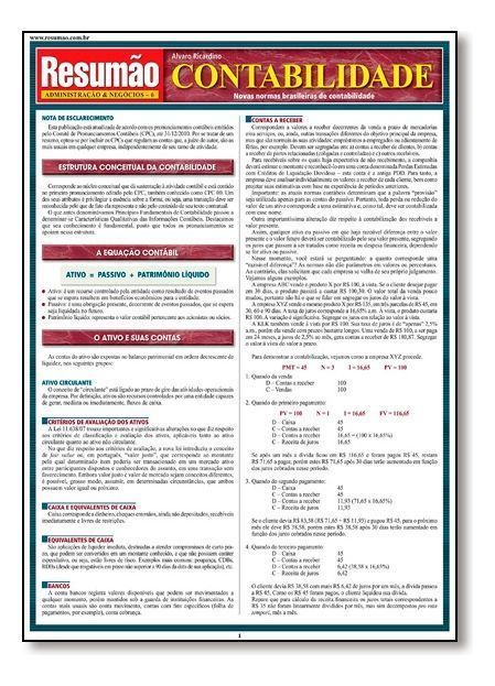 A contabilidade explicada de forma clara e objetiva neste guia prático que acompanha a trajetória profissional de seus leitores. Serve aos estudantes que precisam entender a matéria e aos profissionais que querem relembrar alguns pontos. Seu conteúdo está organizado de maneira que você possa encontrar rapidamente os temas de seu interesse, desde a estrutura conceitual da contabilidade à equação contábil (o ativo, o passivo e suas contas), o patrimônio líquido, o balanço patrimonial e os demonstrativos do custo das mercadorias vendidas, dos lucros ou prejuízos acumulados, das mutações do patrimônio. Sem falar na demonstração do fluxo de caixa, nas contas que exigem cuidados especiais, no relatório da administração, no parecer dos auditores e nas notas explicativas. Direto ao ponto, fácil de guardar, ótimo para aprender e relembrar.