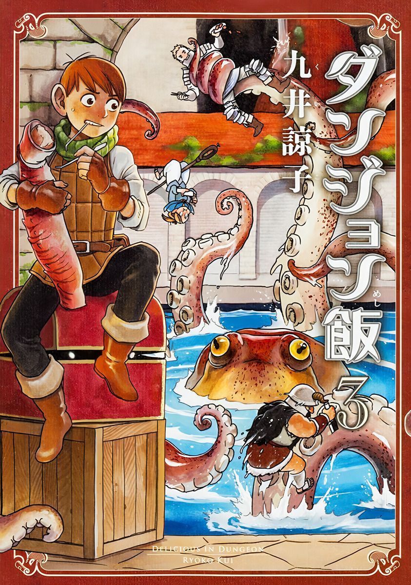 Assado, grelhado ou até cru! Kraken-Gigante é bom de qualquer jeito!!O quarto andar subterrâneo é uma área inundada repleta de monstros poderosos como sereias, ondinas, sapos gigantes... De que forma Laios e seu grupo irão lidar com esses monstros que atacam repentinamente sob as águas?! Qual será a melhor forma de comê-los?! Grandes desdobramentos os aguardam neste terceiro volume, onde até Namari, uma antiga integrante do grupo, dá as caras!!