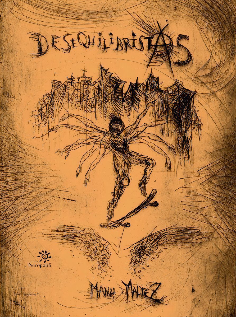 Cantor, compositor, baixista, exímio desenhista, escultor, poeta performático. O jovem artista Manu Maltez transita entre essas linguagens com vigor e ousadia. E as horas vagas, passa nas pistas de skate da cidade, especialmente a da Avenida Sumaré. Para ele, “skatistas não são esportistas. Nem poetas. Muito menos guerrilheiros, saltimbancos, estilistas, maloqueiros, delinquentes, dançarinos, suicidas, equilibristas, desequilibrados. Mas um pouco disso tudo eles têm sido nesses últimos 50 anos”. Neste livro, ele reúne dezenas de desenhos a nanquim e textos para “declame em via pública, sobre um skate, pela cidade em chamas”. O artista aqui põe o traço e o verbo sobre as rodas do skate, e na esteira desse que é um dos movimentos culturais mais interessantes do espaço urbano contemporâneo.