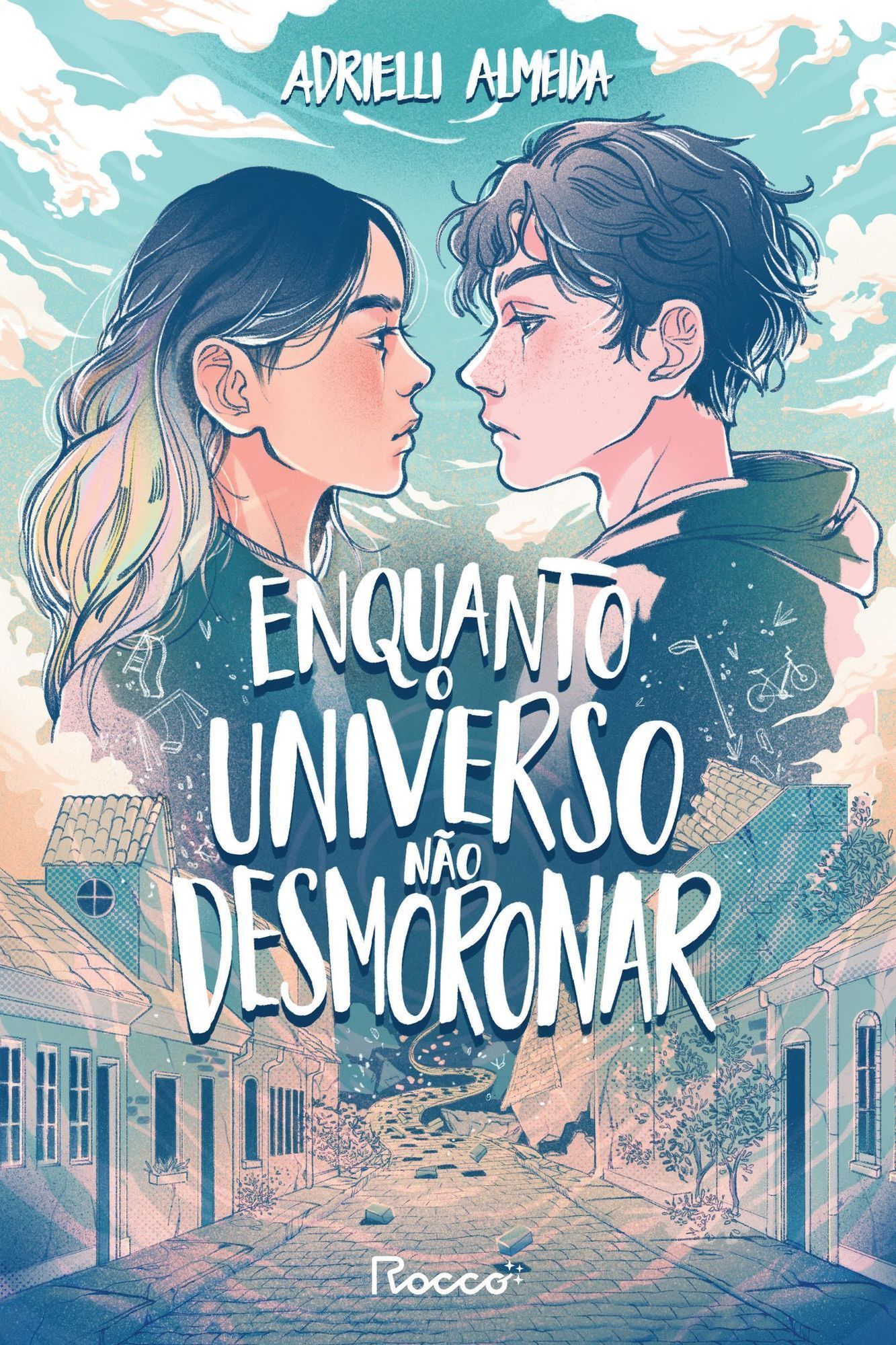 Queria poder dizer que estávamos certos sobre o amanhã, mas a noite já acabou faz um bom tempo, e não sabemos se vai haver um amanhã para nós. Então, eu a seguro. Prometo para o silêncio dos grilos, para a escuridão dos vaga-lumes, para os primeiros raios de sol. Prometo que, enquanto o universo não desmoronar, vou segurar essa garota. Alice é a única sobrevivente do acidente de carro que matou seu irmão Thiago e sua melhor amiga Isabelle. Quando sai do hospital, o que a espera é uma cidade cheia de olhares e sussurros curiosos, o quarto vazio de Thiago, onde sua mãe não entra, e a escola em que ela não é a única que sente o vácuo deixado por Isabelle. Rodrigo também não sabe como lidar com a ausência deixada pela morte da namorada. Sem Isabelle, o céu parece estar caindo diariamente, embora o mundo nunca termine de acabar. Mais ninguém parece entender isso além da garota de cabelo colorido que nunca gostou dele, mas que agora é a única que compartilha esse vazio. Em festas secretas regadas a suco de abacaxi com vodca, em velhos balanços na pracinha, nos corredores da escola, em ruas desesperadoramente familiares e para sempre transformadas, Rodrigo e Alice se encontram, se unem e se afastam, tentando compreender tudo que perderam e talvez, apenas talvez, enquanto o universo não desmoronar, tudo que ainda há para encontrar — inclusive um no outro. "A Adrielli tornou esse sentimento de gosto estranho que é o luto em identificação. Eu entendi as dores de Alice e Rodrigo mais do que gostaria, mas cheguei sorrindo ao fim da leitura." — Babi Dewet, autora da série sábado à noite "Um retrato emocionante e sincero sobre como é amadurecer em meio à dor do luto. Eu amei este livro!" — Iris Figueiredo, autora de Céu sem estrelas