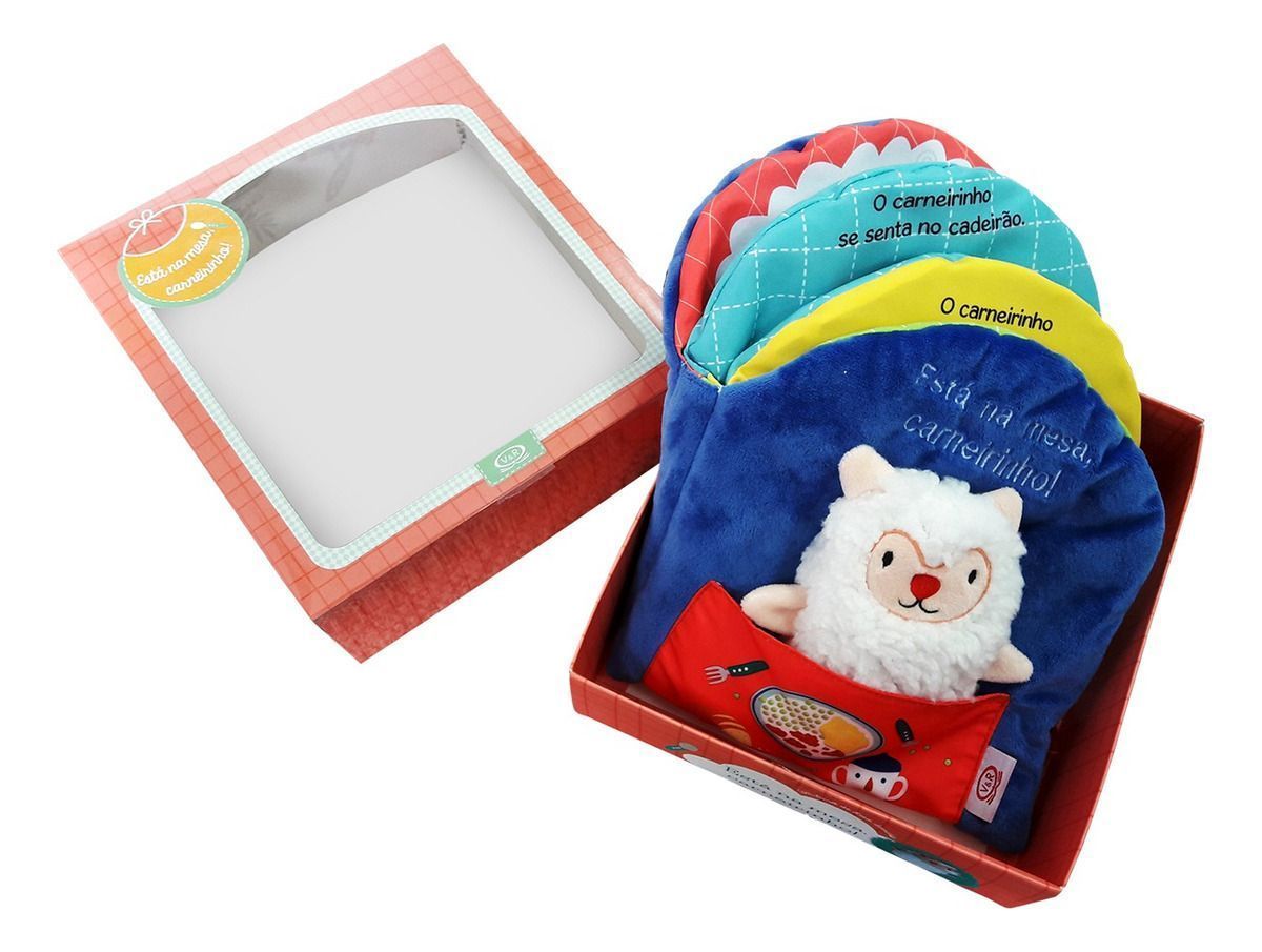 "Um maravilhoso livro de pano, para incentivar seu bebê na hora de papar. A hora de comer pode ser muito divertida. Seu bebê vai interagir e imitar as ações do carneirinho e, pouco a pouco, ganhar autonomia para comer sozinho. O carneirinho será o companheiro ideal para as refeições do seu bebê! Contém um livro de pano com 6 páginas para aprender a comer sozinho! "