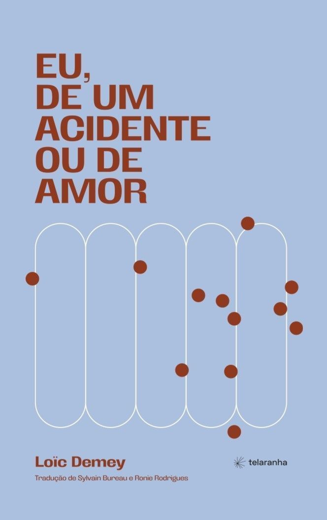 Foi após escutar o poema “Prendre corps” (“Tomar corpo”, “incorporar”), de Ghérasim Luca, na versão musical feita pelo cantor francês Arthur H. que Loïc Demey decidiu escrever “Eu, de um acidente ou de amor”. Do poema, ele guardou a ideia de omitir os verbos, sejam no infinitivo, sejam conjugados, e de trocá-los por nomes, adjetivos ou advérbios. “Eu, de um acidente ou de amor” conta uma história de amor entre dois parisienses de trinta anos, Adele e Hadrien. Depois do primeiro encontro nos Jardins de Luxemburgo, o narrador, Hadrien, enlouquece. Sem explicação e sob a tensão do desejo, seu discurso se fragmenta, se distorce, se desconstrói. Não consegue mais formar frases e tenta, em vão, tirar Adele de sua cabeça para voltar ao normal. Pois a situação é grave: a tempestade do amor o deixou sem verbo, sem ação, sem chão. Mas “tomber amoureux” (“apaixonar-se” ou, literalmente, “cair apaixonado”) não se trata justamente de uma queda?