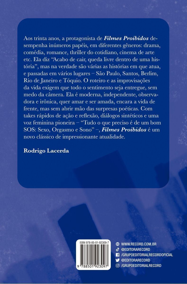 Primeiro romance de Bruna Lombardi, publicado em 1990, Filmes proibidos retorna em nova edição pela Editora Record, com texto de orelha assinado pela escritora e jornalista Giovana Madalosso e texto de quarta capa escrito pelo autor, tradutor e editor Rodrigo Lacerda. Bruna Lombardi é uma artista multifacetada: além de talentosa atriz, apresentadora, roteirista e produtora de cinema, também se destaca como poeta e escritora. Em 1990, após ter publicado livros de poesia e literatura infantil, lançou seu romance de estreia, Filmes proibidos. Trinta e cinco anos depois de sua primeira publicação, a obra retorna ao público em nova edição pela Editora Record, com texto de orelha assinado por Giovana Madalosso e texto de quarta capa escrito por Rodrigo Lacerda. Filmes proibidos, narrado em primeira pessoa, conta a história de uma mulher de trinta anos que atravessa uma série de experiências, em diferentes lugares e momentos da vida. Viciada em “remédios para rinite” e um tanto perdida em sua existência, logo nas primeiras páginas ela se apaixona de pronto por um homem fugaz, que aparece e desaparece constantemente – criando a sensação de que ele escorre pelos dedos da personagem, e também do leitor –, como uma ilusão efêmera. Por meio dessa protagonista moderna, independente, observadora, irônica e que, ao mesmo tempo, é romântica e busca viver um grande amor, somos imersos em uma São Paulo vibrante, repleta de personagens excêntricos, como “a cartomante que vai perdendo o sotaque à medida que a consulta avança, a mãe hipocondríaca que canta óperas no telefone, o amigo misantropo, o psicanalista que estuda a sexualidade dos caramujos [...]. Essas figuras ganham voz em diálogos afiadíssimos, pontuados por frases lapidares, dessas que hoje receberiam milhares de likes”, conforme relata Giovana Madalosso no texto de orelha. A aventura aqui narrada ocorre na virada da década de 1980 para 1990. No texto inédito de apresentação a essa edição, Bruna Lombardi reflete sobre a geração protagonista dessa história, que é “urbana, pós-moderna, fascinada pela explosão techno e pelos computadores pessoais”. Trata-se de uma sociedade aquém do que hoje, aparentemente, nos é essencial, que ainda não tem “redes sociais, Google, celulares, selfies, WhatsApp, streaming, algoritmos, aplicativos e muito menos IA”. A narrativa retrata, assim, uma geração que valoriza a presença física de seu parceiro e exige a forma real do outro, ao mesmo tempo em que está à beira da transição para o mundo digital. No entanto, Filmes proibidos não é uma obra que ficou presa no século XX. Na verdade, apesar do gap temporal evidenciado pelas diferenças entre o que para as personagens era novidade e o que para nós já pertence ao passado, traz uma história que parece ter sido escrita nos dias atuais. É, portanto, uma narrativa pioneira, à frente de seu tempo, assim como sua autora, que coloca no centro do palco uma mulher dona de si, que não abre mão de viver plenamente, em sua liberdade. Como bem observa Giovana Madalosso, Bruna Lombardi "antecipa a geração de protagonistas sexualmente livres e descontruídas da literatura contemporânea". “Como todo brasileiro, eu já conhecia o talento de Bruna Lombardi na frente das câmeras. Adorei conhecer na frente de uma folha em branco. Neste livro, Bruna se revela uma grande escritora, em um romance que hipnotiza o leitor da primeira à última linha.” – Giovana Madalosso