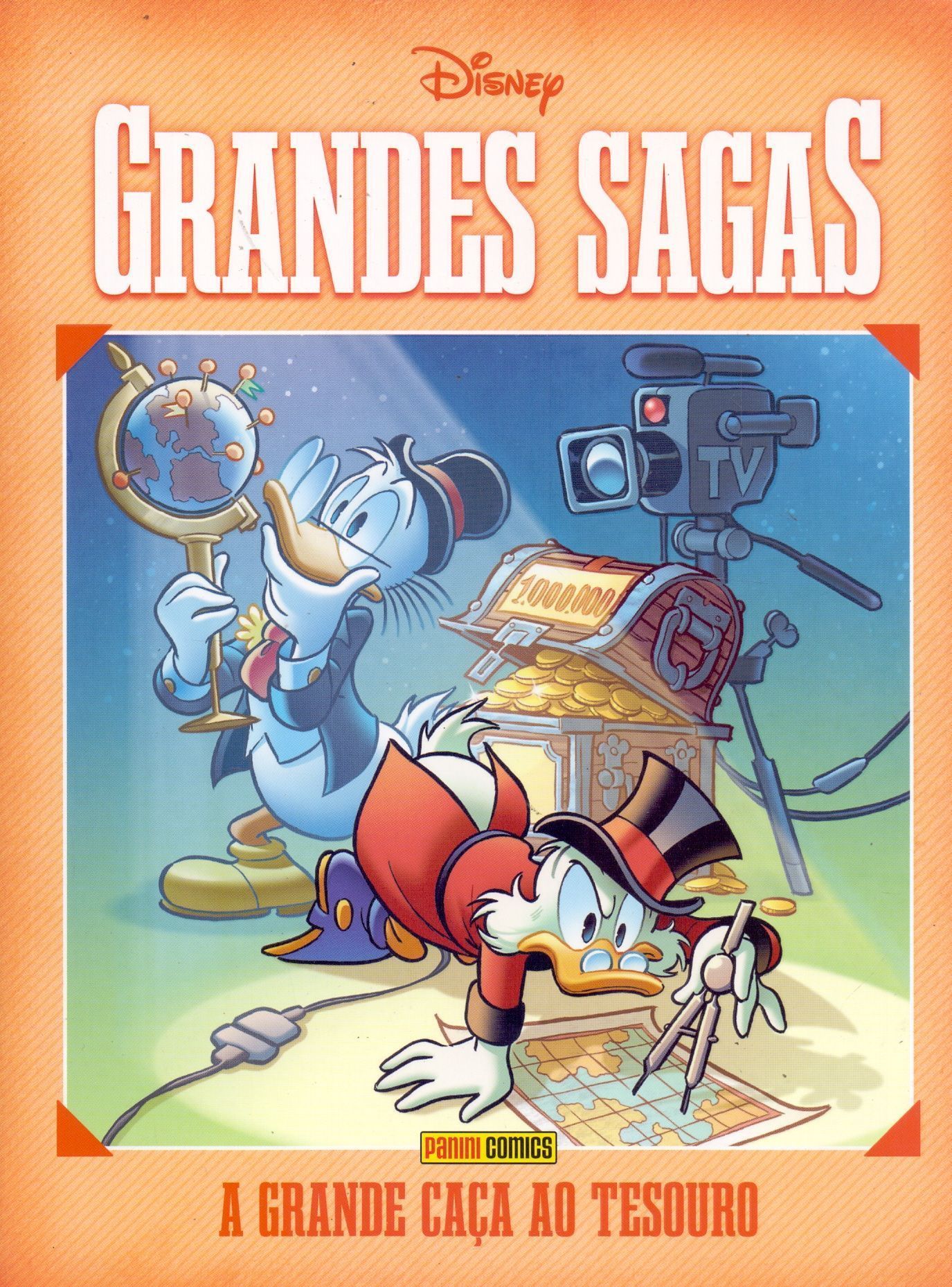 Tio Patinhas e Patacôncio participam de um programa de televisão e são sorteados para caçar um tesouro milionário. Para isso, ambos precisam seguir pistas fornecidas em diversos países até alcançarem o prêmio, na etapa final. Isso os levará - acompanhados por Huguinho, Zezinho e Luisinho - a lugares distantes e exóticos como o ducado de Pulgônia, a reserva indígena dos Guitirobas, o circo de Parisita e a vastidão do oceano. a bordo de um navio pirata! Humor e aventura num clássico ilustrado por Romano Scarpa!