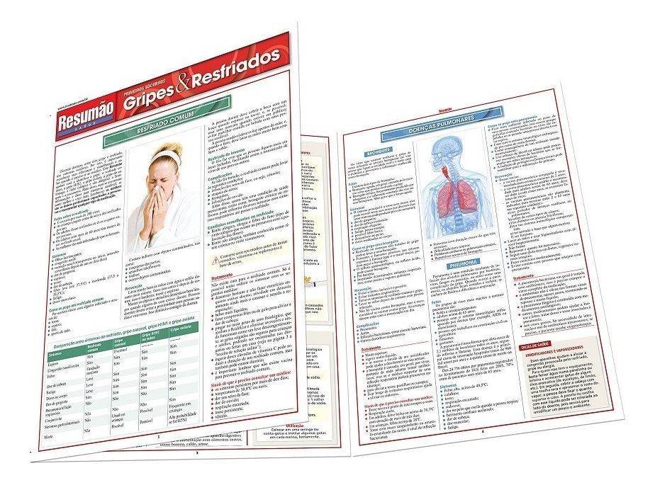Gripes e resfriados são doenças muito comuns que atingem crianças e adultos todos os anos. Eles também têm sintomas bastante semelhantes. Este Resumão ajuda o leitor a identificar a reconhecer o resfriado comum, os vários tipos de gripe, as doenças pulmonares e as rinites. Sintomas, prevenção, complicações, tratamentos e, ainda, dicas para uma vida saudável.