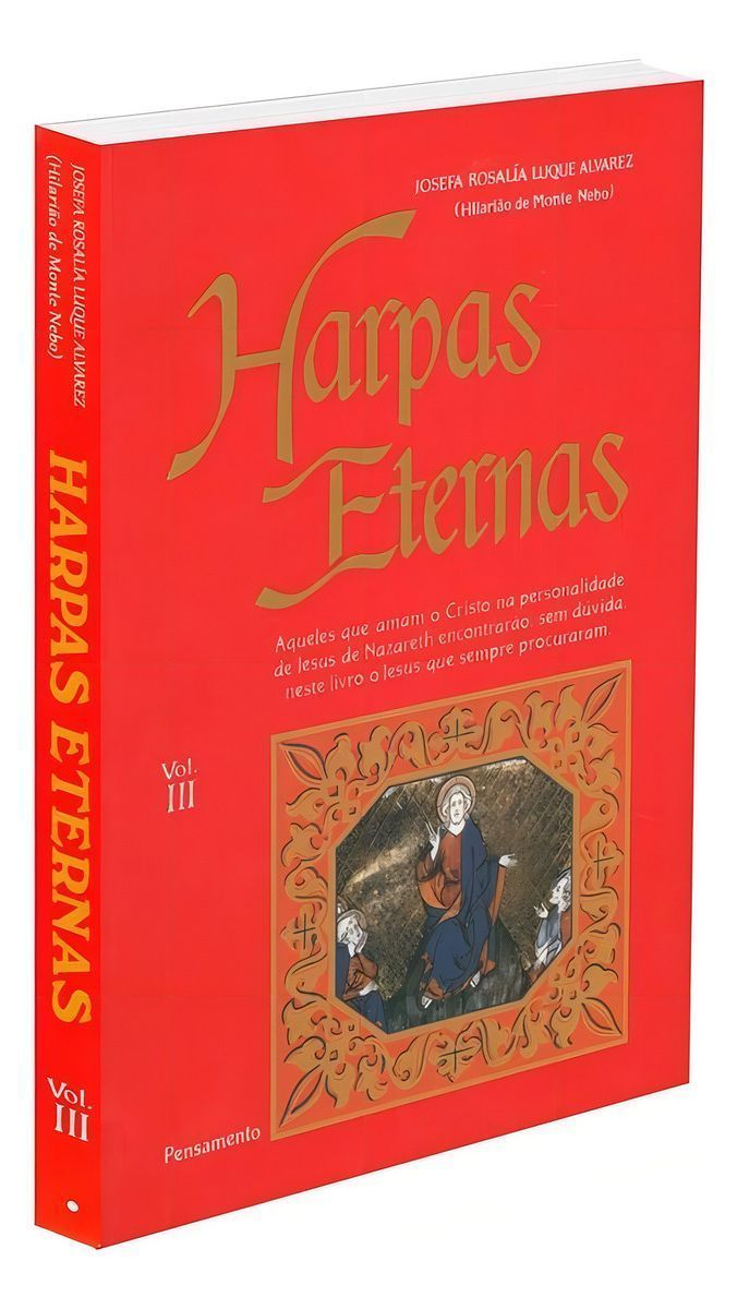Harpas Eternas é o mais fiel relato sobre a vida do Profeta Nazareno, resultado de mais de vinte anos de pesquisas feitas pela mística argentina Josefa Rosalía L. Alvarez nos centros culturais da Palestina, Síria, Grécia, Alexandria, Damasco, de Antióquia e na Ásia Menor, completados pelas informações obtidas nos antigos arquivos essênios de Moab e do Líbano e nas Escolas de Sabedoria fundadas pelos mais ilustres sábios do Oriente. É a história de Jesus de Nazaré narrada com impressionante riqueza de detalhes sobre todas as etapas da sua vida. Toda a sua existência foi um vivo reflexo dessas duas verdades incontestáveis, resumo de todo o seu ensinamento, que sempre transmitia a convicção profunda de que só elas podem levar a humanidade à sua perfeição e felicidade: sentir Deus como Pai é amá-lo sobre todas as coisas; sentir-nos irmãos de todos os homens é trazer o Céu à Terra.Dividida em quatro volumes, Harpas Eternas é uma obra de interesse geral, pois, na expressão do psicólogo suíço C. G. Jung, queiramos ou não, somos todos cristãos.