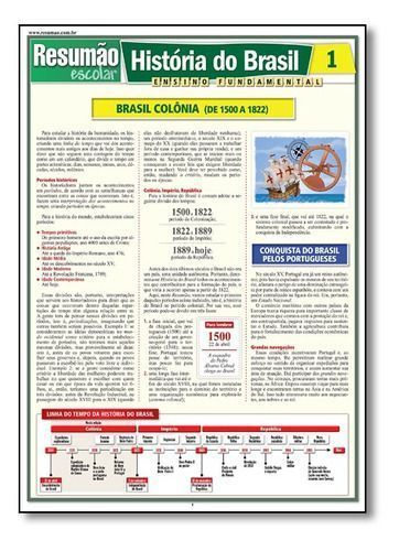 Um guia prático de estudo sobre os principais acontecimentos do período colonial brasileiro até a independência do Brasil. Os períodos históricos, Colônia, Império, República, a conquista do Brasil pelos portugueses, os ocupantes do Brasil: os indígenas, as capitanias e os governos-gerais, administração do poder na Colônia, câmaras municipais, monocultura, latifúndio, escravidão, grandes propriedades, a escravidão no Brasil, cana-de-açúcar: principal atividade, invasões francesas e holandesas, expansão e ocupação do território, economia e sociedade da mineração, revoltas contra a Metrópole, Independência do Brasil. E mais: uma interessante explicação sobre para que serve a história e por que devemos estudá-la.