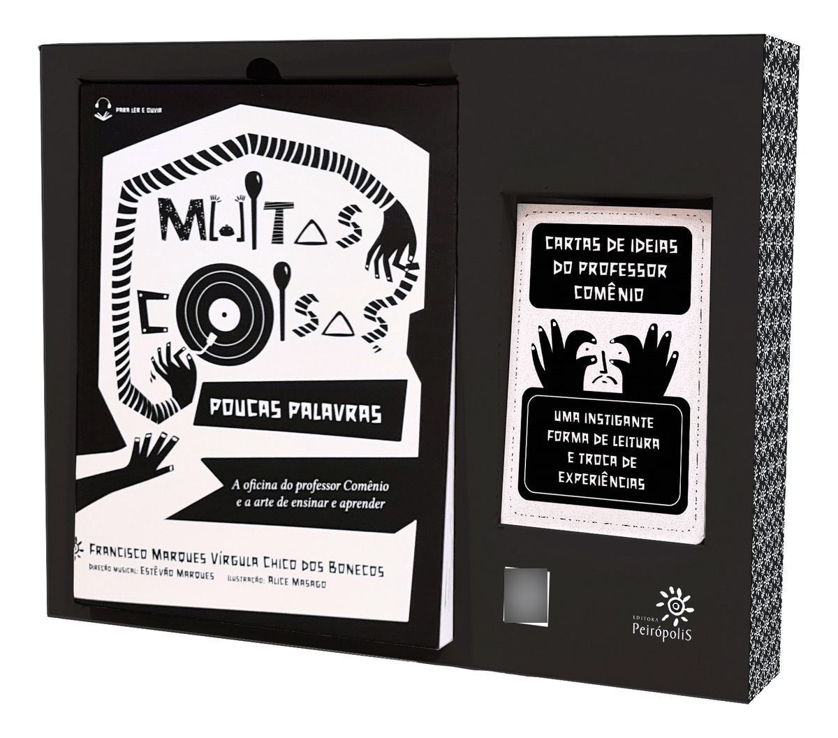 Para o professor que deseja se aprofundar nas ideias de João Amós Comênio e refletir sobre a própria prática a partir das contribuições desse grande educador, considerado o pai da didática e da escola pública, a editora Peirópolis sugere um mergulho em duas obras: a peça radiofônica Muitas coisas, poucas palavras, de autoria de Francisco Marques Vírgula Chico dos Bonecos e as Cartas de Ideias do Professor Comênio, todo mesmo autor, em parceria com Cyrce Andrade. A peça radiofônica e livro cantante apresenta aos leitores-ouvintes o encontro com o professor Comênio e sua arte de ensinar e aprender, encarnada em um criativo diálogo do autor com o educador europeu, cujas ideias são bastante atuais. Além dessa deliciosa conversa, Chico exercita na peça outros gêneros textuais – a poesia, a biografia, a entrevista, a prosa – com a mesma inventividade com que tira de suas maletas os brinquedos milenares e reorganiza os brinquedos invisíveis para criar poesia e encantar. Já as Cartas de ideias compõem um interessante recurso didático para ser usado após a audição da peça, propondo um jogo cooperativo que pode ser realizado entre os professores, as famílias e a comunidade escolar. Nas cartas, além das ideias comenianas, os jogadores enfrentarão, de forma colaborativa, alguns tropeços comuns nas ações educativas, pensando nos passos necessários para que a arte de ensinar e aprender supere as dificuldades do caminho.