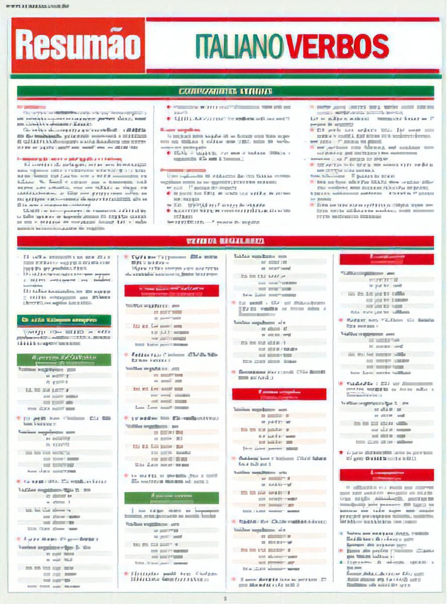 O Resumão Italiano Verbos traz as principais dicas para que o leitor aprenda a usar corretamente os verbos na língua italiana. Nele você vai encontrar: os sete tempos simples e compostos dos verbos regulares, os verbos irregulares e super irregulares, os quatro padrões verbais irregulares, as construções essenciais e os verbos comuns essenciais. Rápido para aprender, fácil de consultar, o Resumão é um excelente guia para quem estuda ou tem vontade de estudar italiano.