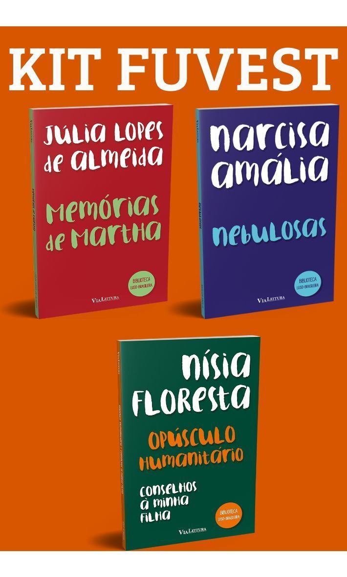 Kit com os 3 livros cobrados no Vestibular da FUVEST. Edições com o texto exigido, impressas em papel creme, letra confortável e com notas para os termos não usuais, facilitando o aprendizado. Opúsculo humanitário e Conselhos à minha filha Esta edição reúne dois dos textos mais celebrados da autora potiguar Nísia Floresta: Conselhos à minha filha, de 1842, e Opúsculo humanitário, de 1853. Opúsculo humanitário é um manifesto em defesa da importância da educação feminina. Afinal, para a autora, o desenvolvimento de uma nação estava intrinsecamente ligado ao papel que a mulher ocupava na sociedade. Da condição feminina na Antiguidade à situação brasileira do século XIX, Nísia traça um panorama histórico do lugar da mulher no âmbito social. Por intermédio de dados oficiais, tece uma profunda crítica à educação das moças no Brasil, além de fincar uma forte posição antiescravista, em prol do aleitamento materno e em defesa de outras pautas progressistas. Nesta obra, nos convida a refletir sobre a importância da emancipação do gênero feminino para a construção de uma sociedade justa e próspera. Em Conselhos à minha filha, Nísia estimula a autonomia intelectual da própria filha. Um retrato de como a autora almejava um maior protagonismo feminino, ao mesmo tempo que reconhecia as limitações sociais de sua época. Edição com textos integrais. Inclui notas explicativas para os termos não usuais. Nebulosas Ainda que este livro tenha sido o único publicado pela poetisa Narcisa Amália, foi suficiente para que a autora alcançasse o reconhecimento público de figuras ilustres como Machado de Assis e o imperador Dom Pedro II. Nebulosas, publicado em 1872, apresenta 44 poemas cujos temas transitam entre a mulher, a natureza e a crítica social abolicionista. Recebeu grande destaque à época de seu lançamento pelo fato, incomum naqueles tempos, de sua autora ser uma mulher. Esta edição traz os textos originais em versão integral, acompanhados de notas da própria autora. Também apresenta notas explicativas da edição para os termos não usuais e foi adequada às normas do Novo Acordo Ortográfico. Memórias de Martha Romance inaugural de Júlia Lopes de Almeida, Memórias de Martha foi publicado pela primeira vez em 1888, a princípio, na forma de folhetim e, depois, como livro. Assim como em suas obras seguintes, nesta destaca-se a preocupação de Júlia em dar voz a uma protagonista feminina e em ressaltar sua importância para a sociedade. Narrado em primeira pessoa, o livro é uma autobiografia ficcional da jovem Martha. Órfã de pai, vê-se, junto à mãe, relegada à pobreza de um cortiço no bairro de São Cristóvão, no Rio de Janeiro. Durante seu crescimento como mulher, encontra na educação a única chance de escapar de sua sina. As constantes preocupações da mãe, que aconselha a filha a aprender os afazeres domésticos para que possa se sustentar depois da morte desta, enquanto a menina vislumbra a ascensão por meio da carreira de professora, evidenciam as transformações do papel social da mulher no fim do século XIX. Uma obra essencial para a compreensão da emancipação da mulher em nossa sociedade. Edição com texto integral. Inclui notas explicativas para os termos não usuais.
