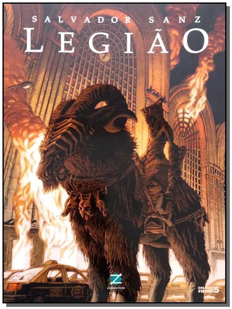 Todas as músicas já foram criadas? Já vimos todas as cores existentes? Conhecemos todas as formas possíveis? Felizmente, não. Existe uma música que nunca deveria ter sido criada, uma cor que nunca deveria ser vista, uma forma que nunca deveríamos conhecer. Mas os três descobrimentos foram feitos em uma cidade e não podemos mais retroceder: a passagem foi aberta. “Salvador Sanz vem criando pesadelos gráficos e fantasmagorias há muito tempo. Já nas páginas do saudoso fanzine Catzole, suas histórias inquietavam, não faziam concessões. Salvador nos encurralava contra escuras – escuríssimas – curvas da imaginação, que a luz negra de sua fantasia revelava. Arte incômoda a deste autor, porque não é agradável se debruçar sobre os abismos. Mas talvez haja no horror profundo uma catarse secreta. Só talvez. É difícil encontrar essa catarse em Legião. Não há respiro, não há trégua. Os céus de uma Buenos Aires invadida se nublam sem fim, literalmente. Ficou distante a disposição heroica desta outra grande história em quadrinhos que também versava sobre uma invasão vinda de além do nosso mundo, O Eternauta. A história começa quando uma cor nova irrompe em nossa realidade, uma cor impossível, que traz à memória aquela que “caiu do céu”, como no relato de Lovecraft… Mas uma sinopse do que aguarda os leitores nestas páginas não será nunca parte desta introdução. Que os prodígios e terrores ali entocados os peguem desprevenidos, como me pegaram quando li Legião pela primeira vez. E se poderia escrever muito sobre a tenebrosa beleza que guarda o horrível, beleza infernal que nos atrai e repele ao mesmo tempo. Salvador está entre esses artistas que rasgaram o véu e violaram o lacre. Não quero me estender sobre a destreza de sua técnica, a maestria do seu desenho: as imagens que se seguem falam por si mesmas. Não quero me pôr como um intérprete objetivo desta obra perturbadora e visceral. Se de algo serve para o prefácio, que conste aqui que Legião é uma das melhores histórias em quadrinhos feitas na Argentina nos últimos tempos. E assim é que, há vários anos já, cada vez que passo pelo Museu de Ciências Naturais na Avenida Ángel Gallardo, e observo (como faço, embevecido, desde que era menino) as corujas de pedra que ladeiam uma de suas entradas, lembro de uma cena inolvidável deste sublime pesadelo de Salvador. Até me parece vê-las pintadas de ‘ultramal’, a cor que caiu do céu… ou ascendeu do inferno.” - Enrique Alcatena