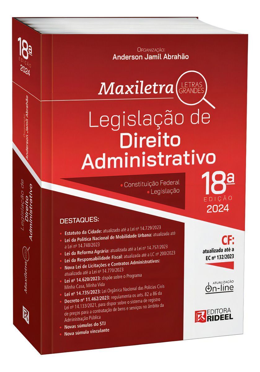 A Editora Rideel, empresa nacionalmente reconhecida por sua destacada atuação e pioneirismo na área de publicação de legislação, apresenta novas edições da revolucionária Coleção de Legislação Maxiletra 2024. Baseada nas já renomadas e consagradas edições de sua coleção de legislação, obras que são ininterruptamente editadas desde a década de 1990, a Rideel criou um novo e moderno projeto gráfico que traz a letra maior*. Além disso, a fonte foi trocada, tornando o texto mais legível, e o espaçamento entre letras e parágrafos também foi aumentado.