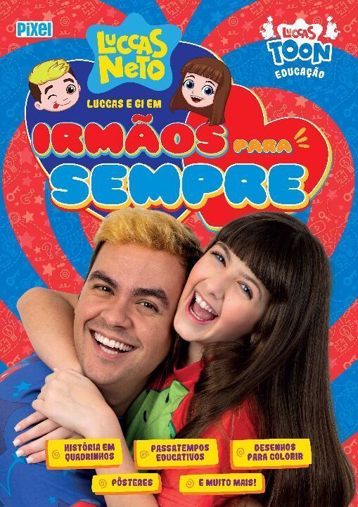 Com mais de 32 milhões de inscritos em seu canal no YouTube, Luccas Neto é um verdadeiro fenômeno entre a criançada!Com sua imaginação e criatividade, ele criou um incrível universo de personagens que encantam e inspiram o público infantil. Entre eles, estão Luccas e Gi, dois irmãos superunidos que vivem diversas aventuras e ensinam muito sobre amor e cumplicidade. LUCCAS E GI EM IRMÃOS PARA SEMPRE é um convite ao leitor para mergulhar nessa linda parceria e conhecer os mais variados sentimentos que costumam fazer parte do relacionamento entre irmãos, como admiração, companheirismo, união, amor e até ciúme, não é mesmo? Tudo isso, é claro, sem deixar de fora todas as travessuras e aventuras que eles adoram! Ficou animado? Então mergulhe nesta novidade e divirta-se muito ao lado de Luccas e Gi!