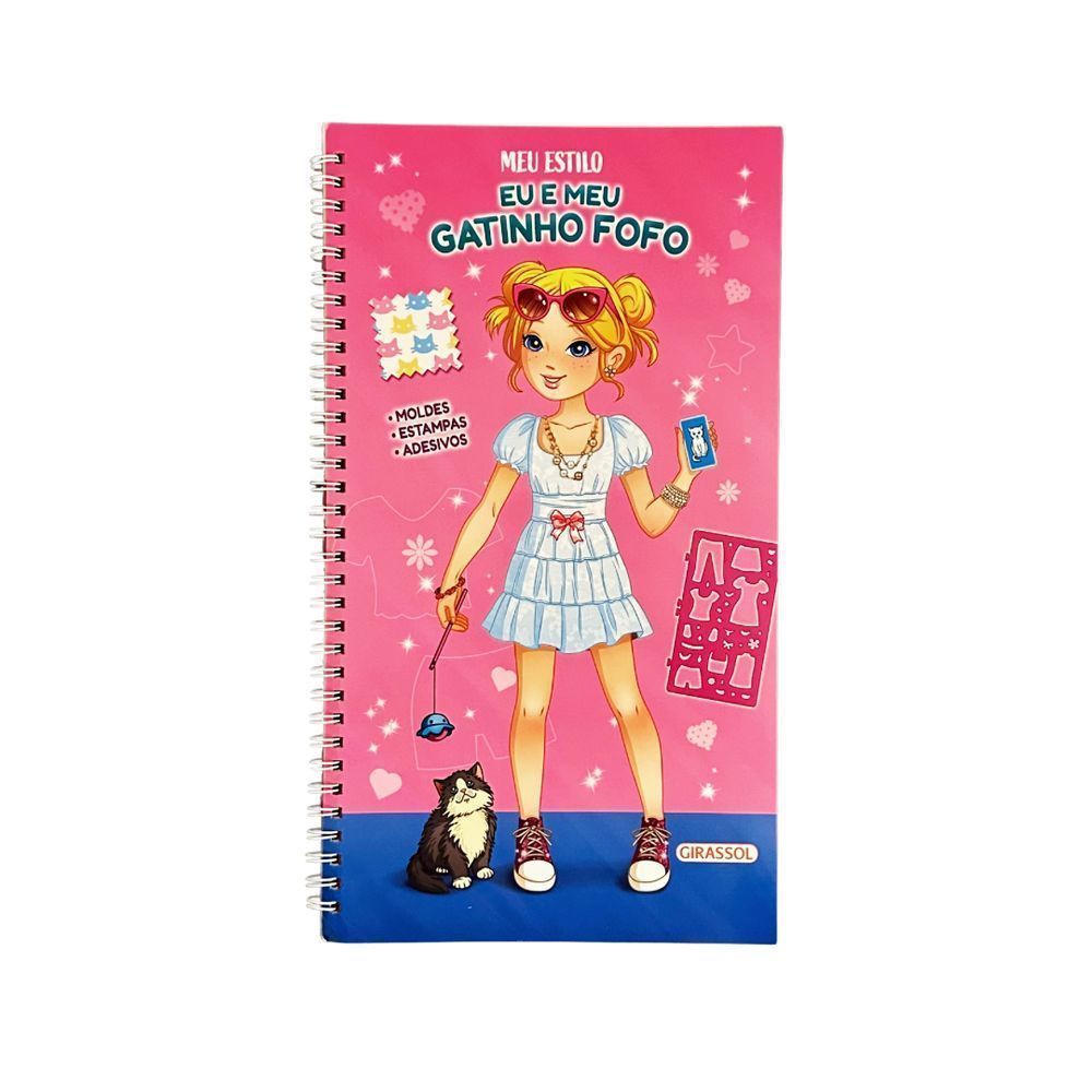 Que tal desenhar e criar os looks mais descolados para a boneca e seu gatinho fofo?Escolha a estampa e, então, use o molde para desenhar muitas roupas estilosas e criativas. Depois, é só cortar e colar no modelo de manequim que quiser. Você pode ainda colorir e completar com adesivos para dar seu toque especial a essa coleção tão divertida!