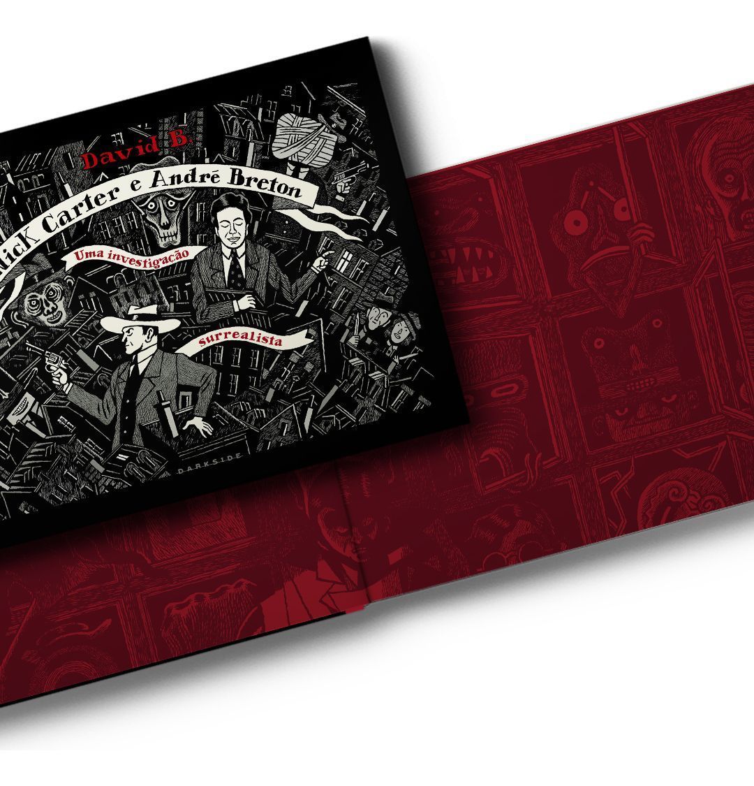 Em um mergulho onírico repleto de referências e loucuras, o criador de Epiléptico aborda o surrealismo com esplendor, inteligência e humor André Breton, o fundador do movimento surrealista, está perdido: ele não tem mais o amor de sua vida, seus colegas foram embora e, acima de tudo, parece que perdeu o que fez do surrealismo o que ele é. Para investigar o que está acontecendo e encontrar a coisa indescritível que lhe foi roubada, ele contrata seu amigo, o detetive americano Nick Carter, personagem de folhetim criado no final do século XIX por J.R. Coryell nos Estados Unidos e que encantou a primeira geração dos surrealistas. Viajando pelo tempo e o espaço em um entrelaçamento de cenários fantásticos, personagens distorcidos, mulheres fatais, situações perigosas, crimes e máquinas extraordinárias, Nick Carter sai em uma jornada que revela o surrealismo em seu ponto alto, com o intuito de recuperar aquilo que Breton denominou de “o ouro do tempo”, o personagem central de suas histórias. Inusitado e encantador, Nick Carter e André Breton: Uma Investigação Surrealista é um passeio eletrizante pelo coração do movimento artístico que redefiniu o século XX, conduzido por um dos maiores nomes dos quadrinhos franceses, David B. — autor do clássico e premiado Epiléptico. Enquanto a investigação de Nick Carter apenas sugere a busca pelo maravilhoso, há muitas referências à vida de Breton e ao surrealismo, tanto no texto quanto nos incríveis painéis criados por David B., que os fãs do movimento artístico se deliciarão em descobrir. Leitura divertida e instrutiva, vamos passear nos sonhos de Robert Desnos, visitar Nadja em um hospício, nos deparar com vilões fictícios do universo de Carter, como o doutor Quartz, e saber da desavenças com Salvador Dalí e Gala, sua companheira e ex-esposa de Paul Éluard. Além disso, a investigação explora a relação com outros nomes incontornáveis do movimento, como Louis Aragon, René Crevel, George Bataille e René Magritte, sem falar em personagens que frequentavam a turma, como Leon Trotsky e Frida Kahlo. Além de uma história do movimento surrealista vista pela lente onírica, Nick Carter e André Breton também é uma excelente reflexão sobre criação, inspiração, integridade artística e o destino das obras ao longo do tempo. Pois, conforme afirma o professor e pesquisador Marcelo Jacques de Moraes no posfácio exclusivo para esta edição, “o que faz o ouro do tempo, aquilo que Breton chamou um dia de ‘beleza convulsiva’, ou de ‘maravilhoso’, não é o que se pode vir a encontrar ao fim de uma procura, mas a intensidade e a energia vitais que se disseminam, e cujos rastros se materializam - se ‘acumulam’ - no contexto da própria procura”. Além deste complemento, a primorosa edição da DarkSide® Books, inclui um glossário escrito por Ameli Jannarelli, colagista e editora da 100/cabeças, responsável pelo resgate fundamental de edições surrealistas. Uma exuberância visual, uma narrativa gráfica que desafia os limites do real e do imaginário, Nick Carter e André Breton apresenta aquilo que de melhor a arte sequencial consegue produzir, refletindo sobre o ato criativo e deixando no leitor uma vontade de seguir se debruçando por esse universo onírico e lúdico que o movimento surrealista produziu como poucos no século XX.