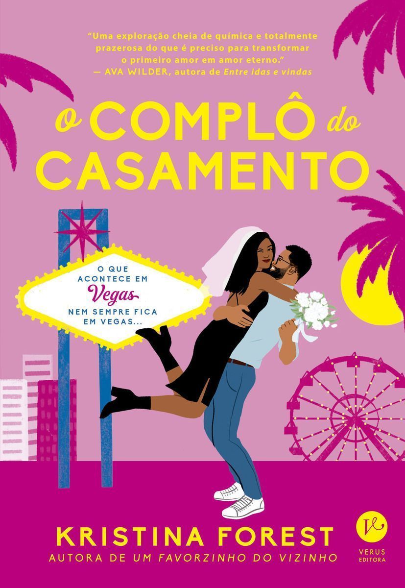 Um casal que namorou na adolescência tem a chance de ficar junto outra vez — agora em um casamento de conveniência. Será que vai dar certo? O complô do casamento é o novo livro da autora de Um favorzinho do vizinho. Para Violet Greene, moda é tudo. Como estilista de celebridades, ela viaja pelo mundo vivendo como sempre sonhou. Sua vida profissional vai muito bem, já a vida pessoal está em ruínas. Depois de sobreviver ao fim do seu noivado, há seis meses, Violet está determinada a se concentrar em sua carreira. Mas a vida lhe entrega algo — ou melhor, alguém — que pode atrapalhar tudo… Xavier Wright não esperava encontrar Violet, sua namorada da época de escola — e a garota com quem ele pensou que iria se casar —, em uma viagem de aniversário a Las Vegas. Como professor e treinador de basquete, ele raramente sai de sua cidade natal, então quais eram as chances? Quando o choque inicial passa, eles decidem comemorar juntos. Violet e Xavier se sentem jovens e ousados enquanto festejam a noite toda — mas percebem que foram apenas imprudentes quando, na manhã seguinte, acordam um ao lado do outro usando alianças. Contudo, eles acabam se dando conta de que esse casamento por impulso pode ser mais conveniente do que imaginavam para a carreira de ambos. E assim decidem desempenhar o papel de um casal feliz. No entanto, quando a paixão antiga volta com tudo, Violet e Xavier percebem que seus sentimentos continuam tão reais quanto eram na adolescência. Será que a vida que eles levam hoje é diferente demais para que possam lidar com isso, ou eles finalmente vão ter um final feliz? “O complô do casamento é um romance de segunda chance de primeira linha. O desejo! A dor de cabeça! O tempero! Kristina tece uma história de amor que parece familiar, mas é totalmente nova. Xavier e Violet saltam das páginas direto para o seu coração.” — Erin Hahn, autora de Built to Last e Friends Don’t Fall in Love “O complô do casamento tem tudo o que eu procuro em um romance. A jornada de segunda chance de Violet e Xavier é de tirar o fôlego e roubou meu coração… Vou ler tudo o que Kristina Forest escrever!” — Ava Wilder, autora de Entre idas e vindas “O romance de Forest é um doce retrato do primeiro amor e das segundas chances. Violet e Xavier são memoráveis, reais e vulneráveis enquanto lidam com sacrifícios profissionais e o medo de mais desilusões amorosas. No entanto, eles estavam predestinados desde o início — e o romance de Forest nunca erra o alvo. Uma segunda chance para acertar.” — Kirkus Reviews “Os leitores vão torcer por Violet e Xavier à medida que compreenderem que o sucesso profissional significa pouco sem uma pessoa especial com quem compartilhá-lo.” — Publishers Weekly “Uma comédia romântica divertida e alegre que vai agradar aos fãs de histórias com relacionamentos de mentirinha.” — Library Journal