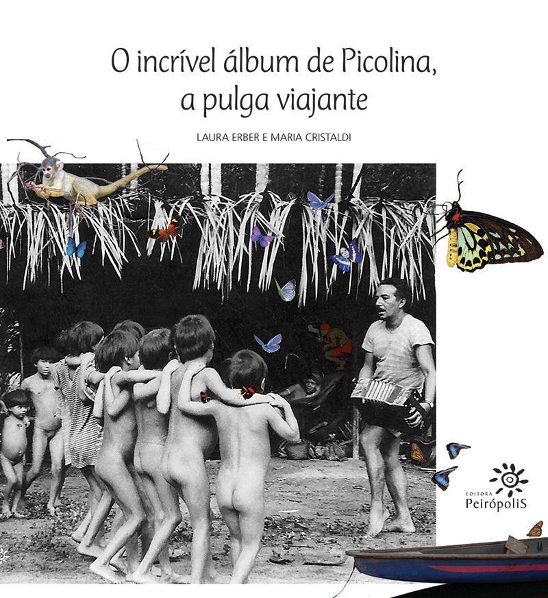 “Chegue mais perto, este álbum deve ser visto bem de pertinho. Pegue a sua lupa e bisbilhoteie as imagens. Descubra os pequenos segredos que elas guardam. Tente encontrar a pulga Picolina nos incríveis lugares por onde ela passou.” Esse é o convite feito pelas autoras a quem abre o álbum de Picolina, a pulga viajante. Feito de dez fotomontagens de originais dos acervos das autoras e de outros grandes acervos (George Eastman House Collection, Rare & Manuscript Collections e Tyrrell Photographic Collection, entre outros), o álbum resulta numa sequência surrealista, uma narrativa imagética nonsense que tem como protagonista uma pulga cosmopolita, capaz de divertir leitores de todas as idades.