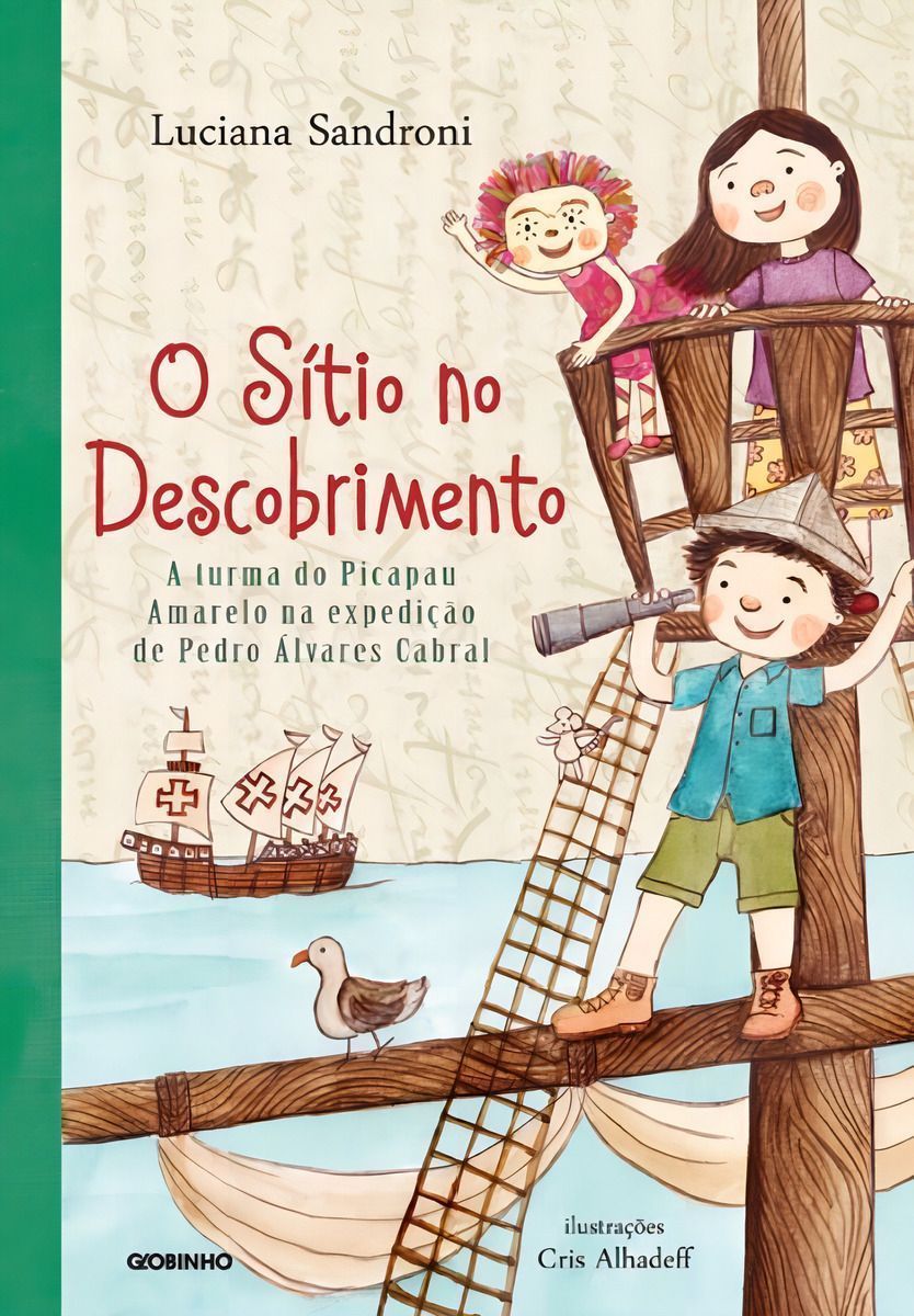 Bem-sucedido do ponto de vista literário – e também pelo conteúdo paradidático, com sua abordagem que bebe de confiáveis fontes históricas sem abrir mão do bom humor e da leveza –, O Sítio no descobrimento fez sucesso. Esgotado nas livrarias, o título, que foi publicado pela primeira vez há doze anos como parte das celebrações pelos 500 anos do descobrimento do Brasil, ganha agora nova edição pelo selo Globinho, com texto revisado e atualizado pela premiada autora infantil Luciana Sandroni e novo projeto gráfico com ilustrações inéditas de Cris Alhadeff. Admiradora e estudiosa da obra de Monteiro Lobato, a autora Luciana Sandroni criou no livro uma narrativa que respeita as características dos personagens do Sítio do Picapau Amarelo. A autora baseou-se em pesquisas de historiadores modernos para contar como aconteceu o Descobrimento do Brasil, conciliando as versões comumente explicadas em sala de aula com dúvidas trazidas por pesquisas paralelas. Em O Sítio no descobrimento, Pedrinho chega ao Sítio do Picapau Amarelo para passar as férias escolares. Mas o menino parece um tanto esquisito. Em vez de se aventurar pela mata de bodoque na mão, o garoto passa os dias estudando na biblioteca da avó. Instigado pelo que aprendeu na escola, mas confuso com as informações desencontradas que pesquisou nos livros, Pedrinho está cismado: afinal, qual é a verdadeira história do descobrimento do Brasil? Cabral veio parar aqui por acaso ou de propósito? Se já havia índios vivendo nestas terras, então por que se fala em “descobrimento” e não em “invasão”? Cabe a Emília propor um jeito de obter todas as respostas: usar o pó de pirlimpimpim para voltar ao passado e participar da expedição portuguesa que chegou primeiro às praias brasileiras. Este é o ponto de partida para as aventuras de O Sítio no descobrimento.