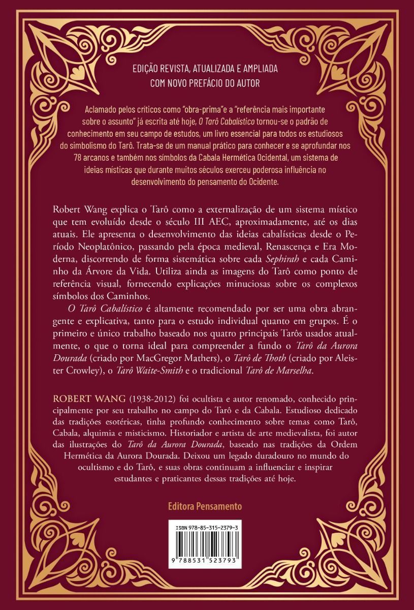 Uma verdadeira Obra-prima!“Aclamado pelos críticos como a referência mais profunda sobre o assunto já escrita, até os dias de hoje!” Considerado um manual prático de um sistema de ideias místicas, que durante muitos séculos exerceu poderosa influência no desenvolvimento do pensamento ocidental, traz a representação da árvore da vida no simbolismo dos 78 arcanos.É primeiro e único trabalho que foi baseado nos quatro principais tarôs usados atualmente, o que torna este livro ideal para compreender a fundo o Tarô da Aurora Dourada (criado por MacGregor Mathers), o Tarô de Thoth (criado por Aleister Crowley), o Tarô Waite-Smith e o tradicional Tarô de Marselha. O Tarô Cabalístico tornou-se o padrão de conhecimento em seu campo de estudos, um livro essencial para todos os estudiosos do simbolismo do Tarô. Uma obra de referência para os símbolos da Cabala Hermética Ocidental, este livro é altamente recomendado, por ser uma obra abrangente e explicativa, tanto para o estudo individual quanto para estudos em grupos.