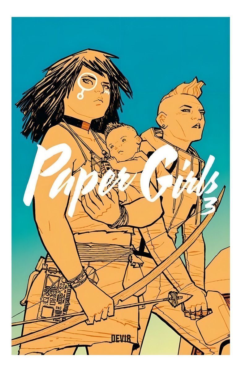 As entregadoras de jornal Erin, Mac e Tiffany finalmente se reúnem com sua amiga KJ no passado pré-histórico, onde elas descobrem as origens secretas da viagem no tempo e usam todos os meios necessários para tentar voltar para casa. "Paper Girls" é uma história sobre violência e maternidade, do ponto de vista de quatro meninas de 12 anos que vieram das perigosas ruas de 1988. De Brian K. Vaughan, o mesmo autor de Saga, Os Fugitivos (Marvel), Y o Último Homem (Vertigo) e The Private Eye.