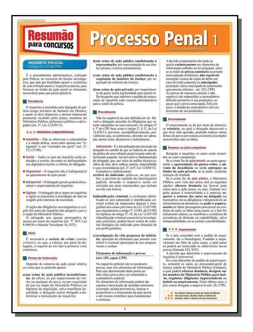 Título do livro : RESUMAO P/ CONCURSOS - PROCESSO PENAL 1