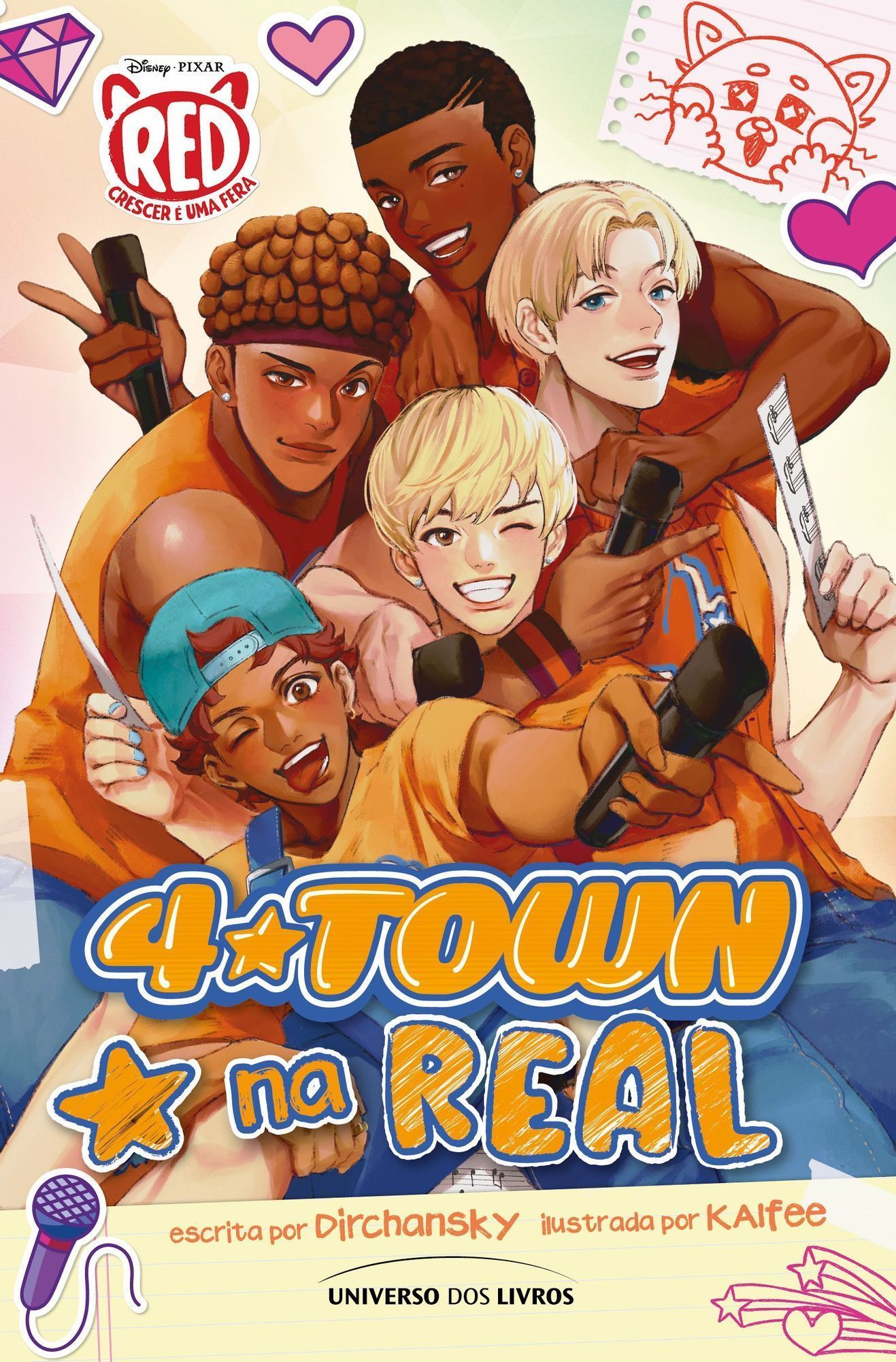 Passe o dia com os membros da banda 4*Town neste mangá que acompanha o sucesso da Disney Pixar, Red – crescer é uma fera Os 4*Townies estão na maior empolgação para ver a 4*Town tocar suas músicas favoritas ao vivo, mas como será que a maior boy band do Canadá passa o dia antes do épico show em Toronto? Aproveite a companhia de Robaire, Jesse, Tae Young, Aaron T. e Aaron Z. enquanto eles curtem uma pausa incomum em suas agendas lotadas. Sobre a autora: Dirchansky é uma contadora de histórias que atualmente mora em Toronto, no Canadá, e escreve e cria diversos gêneros de quadrinhos com Love Hill, o coletivo de arte independente do qual é cofundadora. Sobre a ilustradora: KAIfee é ilustradora independente e mora na Carolina do Norte, onde produz quadrinhos e itens de personagens para seus leitores e fãs. Leia também: Red: crescer é uma fera em graphic novel; Descendentes em mangá: volume 1, textos de Jason Muell e ilustrações de Natsuki Minami; A Bela e a Fera em mangá: a história da Bela, Mallory Reaves; A Bela e a Fera em mangá: a história da Fera, Mallory Reaves. Sobre Disney Consumer Products, Games and Publishing Disney Consumer Products, Games and Publishing (CPGP) traz a magia das marcas e franquias da The Walt Disney Company – incluindo Disney, Pixar, Marvel, Star Wars, National Geographic e mais – no cotidiano de famílias e fãs de todo o mundo por meio de produtos e experiências em mais de 100 categorias de varejo, de brinquedos e camisetas a aplicativos, livros, videogames e muito mais. Uma divisão do segmento de Parques, Experiências e Produtos da Disney, as operações globais da CPGP incluem: o maior negócio de licenciamento do mundo, uma das maiores marcas de publicações infantis, um dos principais licenciadores de jogos interativos entre plataformas, Store in Stores por toda a região, e o e-shop no disneylatino .com/ shop e disney. com. br/ shop (disponível no Brasil, Colômbia e México).
