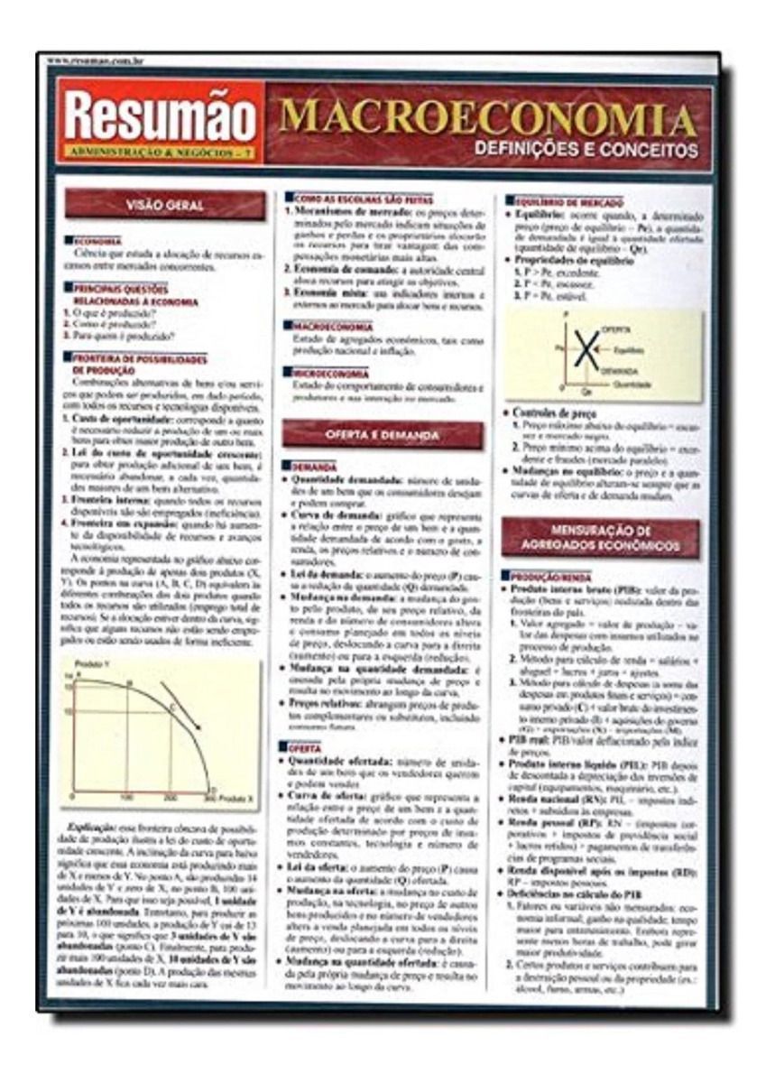 Visão geral: principais questões relacionadas à economia. Oferta e demanda, equilíbrio de mercado. Mensuração de agregados econômicos: produção/renda; níveis de preço; inflação; desemprego. Ciclos dos negócios. Abordagem keynesiana do gasto agregado. Hiato do PIB e o multiplicador de gastos. Política fiscal. Multiplicador de importação. Determinando o equilíbrio preço-produção. Defasagens. Encargos da dívida pública. Problemas com a política fiscal. Teorias macroeconômicas. Efeito dos impostos na renda. Paradoxo da poupança. Setor financeiro. Moeda e bancos. Banco Central. Política monetária. Curva de Phillips. Estagflação.