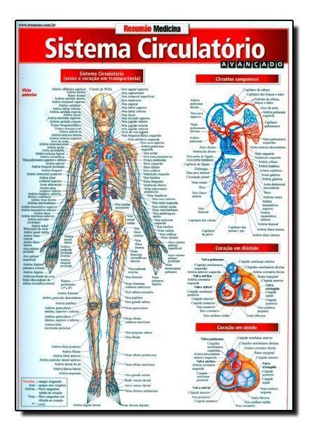 Todos os detalhes do sistema circulatório no corpo humano, em 26 imagens bastante detalhadas, com as indicações anatômicas. Os circuitos sanguíneos, o coração (em sístole e em diástole), o sistema venoso e o sistema arterial. Detalhes das veias e artérias do tórax, pescoço e cabeça, dos vasos sanguíneos, do cérebro e muito mais.