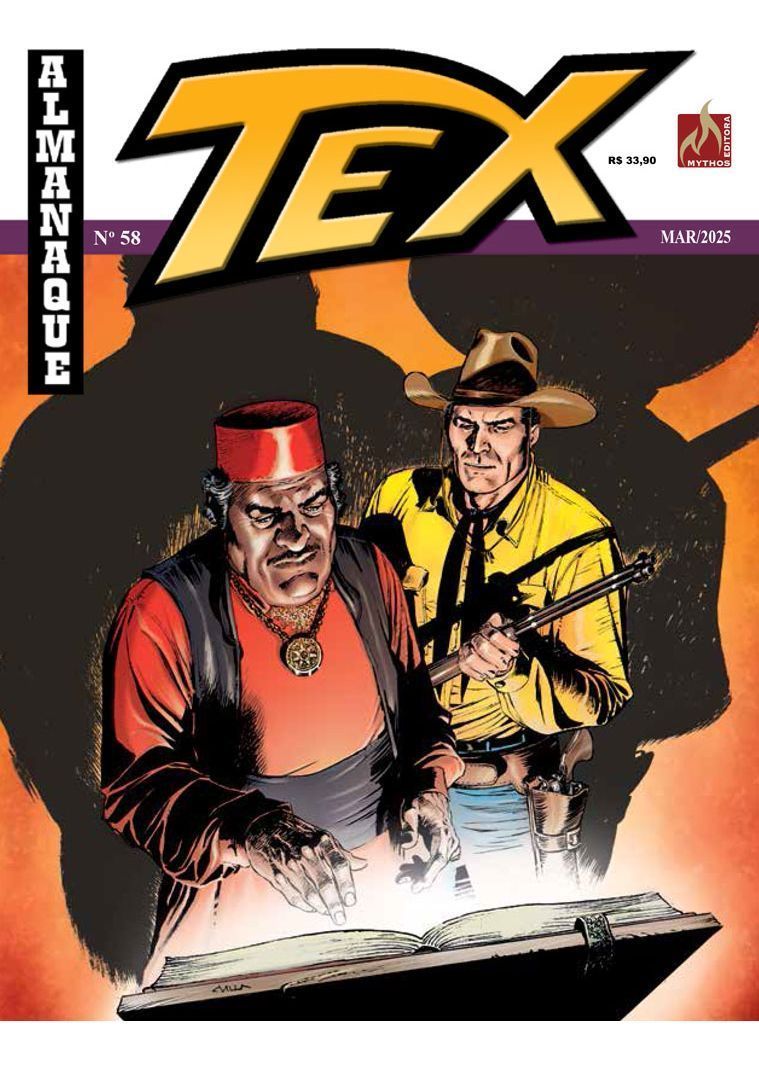 AS DUAS PRISIONEIRAS Duas mulheres conduzidas a julgamento enfrentam as ameaças do Oeste selvagem. Uma é a mulher de um bandido, a outra é acusada de homicídio. Numa viagem cheia de surpresas, Tex deve defendê-las de um ataque indígena e de outros perigos. WAMPYR Uma aventura solo do curandeiro de Pilares! Uma criatura da noite aterroriza o México. El Morisco já encontrou chupa-cabras e bestas sugadoras de sangue, mas esta é a primeira vez que ele e o leal Eusébio se veem às voltas com um vampiro autêntico!