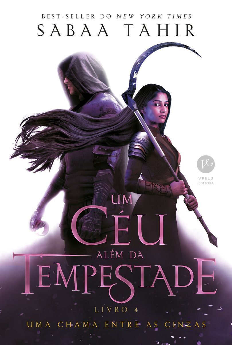 "Um céu além da tempestade é o devastador volume final da aclamada série Uma chama entre as cinzas. Em Um céu além da tempestade, após ficarem mil anos aprisionados, os djinns partem para o ataque, dizimando vilarejos e cidades. Mas, para o Portador da Noite, a vingança contra os humanos é apenas o começo. Ao seu lado, Keris Veturia se declara imperatriz e ameaça de morte todos aqueles que a desafiarem. No topo da lista estão a Águia de Sangue e o que resta de sua família. Laia de Serra, agora aliada da Águia de Sangue, luta para se recuperar da perda das duas pessoas mais importantes de sua vida. Determinada a impedir o apocalipse que se aproxima, ela se lança à destruição do Portador da Noite. No processo, desperta um poder ancestral que pode levá-la à vitória — ou a uma tragédia inimaginável. E, nas profundezas do Lugar de Espera, o Apanhador de Almas busca apenas esquecer a vida — e o amor — que deixou para trás. No entanto, fazer isso significa ignorar a trilha de assassinatos deixada pelo Portador da Noite e seus djinns. Para manter seu juramento e proteger o mundo humano do sobrenatural, o Apanhador de Almas deve olhar para além das fronteiras de sua terra. E assumir uma missão que pode salvar — ou destruir — tudo o que ele conhece. “Uma das melhores séries de fantasia da década.” - Buzzfeed “Esta série mistura Jogos vorazes com Game of Thrones... e adiciona uma pitada de Romeu e Julieta.” - The Hollywood Reporter “A narrativa refinada de Tahir nunca perde o ritmo... Esta série é uma jornada do herói épica, com amor, aventura e magia entrelaçados.” - School Library Journal “Um lembrete inquietante do que significa ser humano.” - The Washington Post “Sabaa Tahir atrai tão habilmente o leitor para a vida e os pensamentos de seus personagens que todas as emoções deles — raiva, dor, amor, desejo — percorrem o seu coração a cada página virada. Uma conclusão de tirar o fôlego a esta série de fantasia incrivelmente rica e gratificante.” - Amazon Book Review "