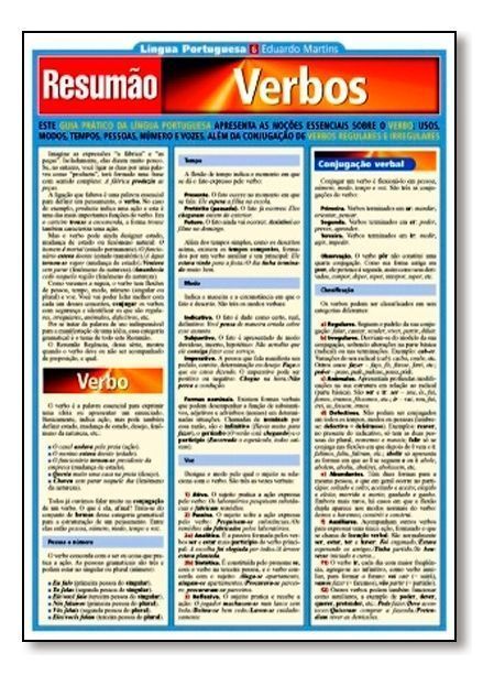 Verbo: pessoa, número, tempo, modo, voz. Conjugação verbal: classificação. Verbos regulares: modos indicativo, subjuntivo, imperativo e formas nominais. Verbos auxiliares derivados de ter. Casos especiais: verbos em iar, verbos do MARIO, verbos em ear. Conjugação de verbos irregulares. Uso de modos e tempos – modo indicativo: presente, pretéritos imperfeito, perfeito e mais-que-perfeito, futuros do presente e do pretérito, modo imperativo: afirmativo, negativo, subjuntivo (casos especiais), gerúndio, particípio. Particularidades. Teste. Atualizado com as novas regras de ortografia.